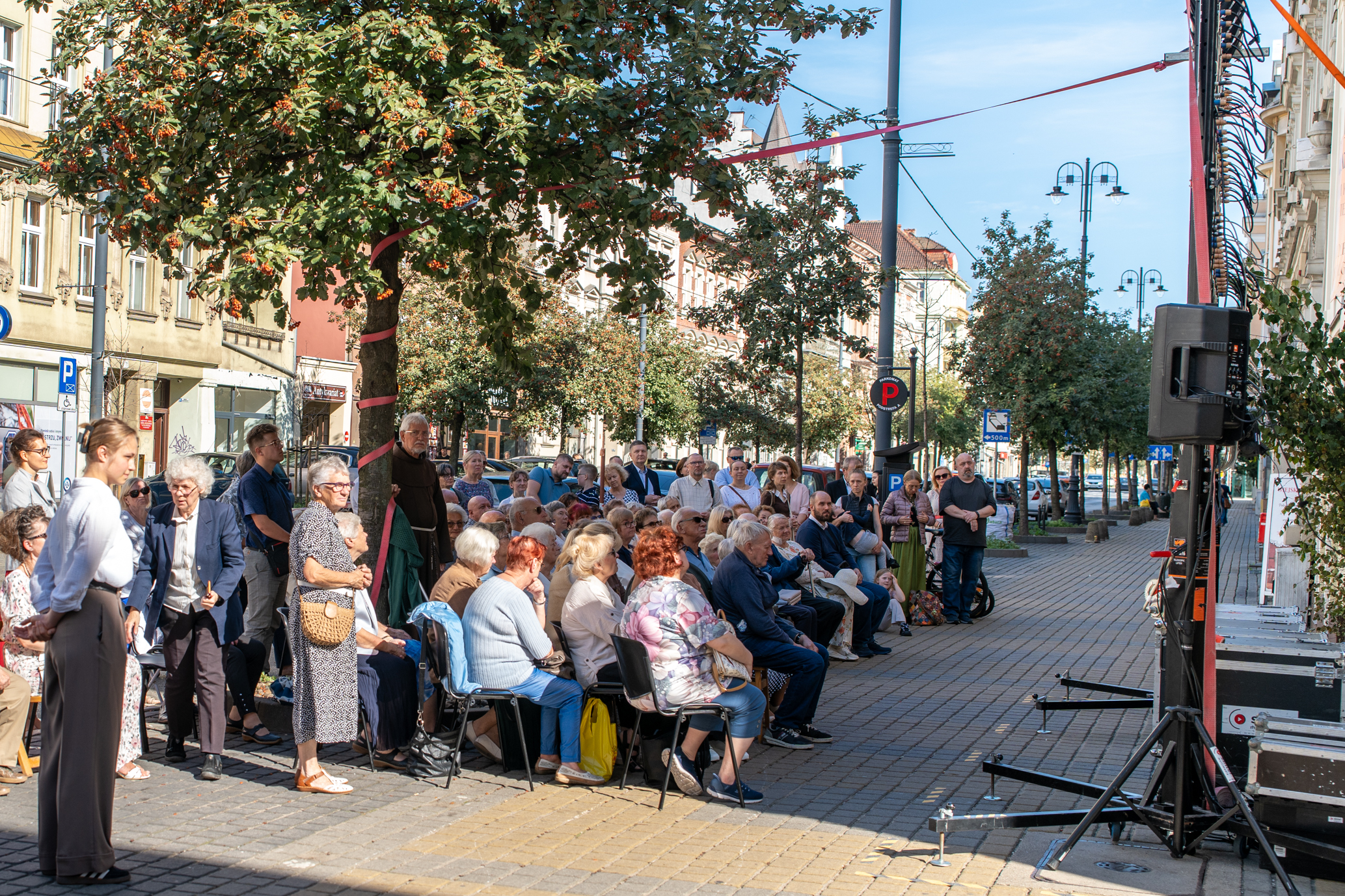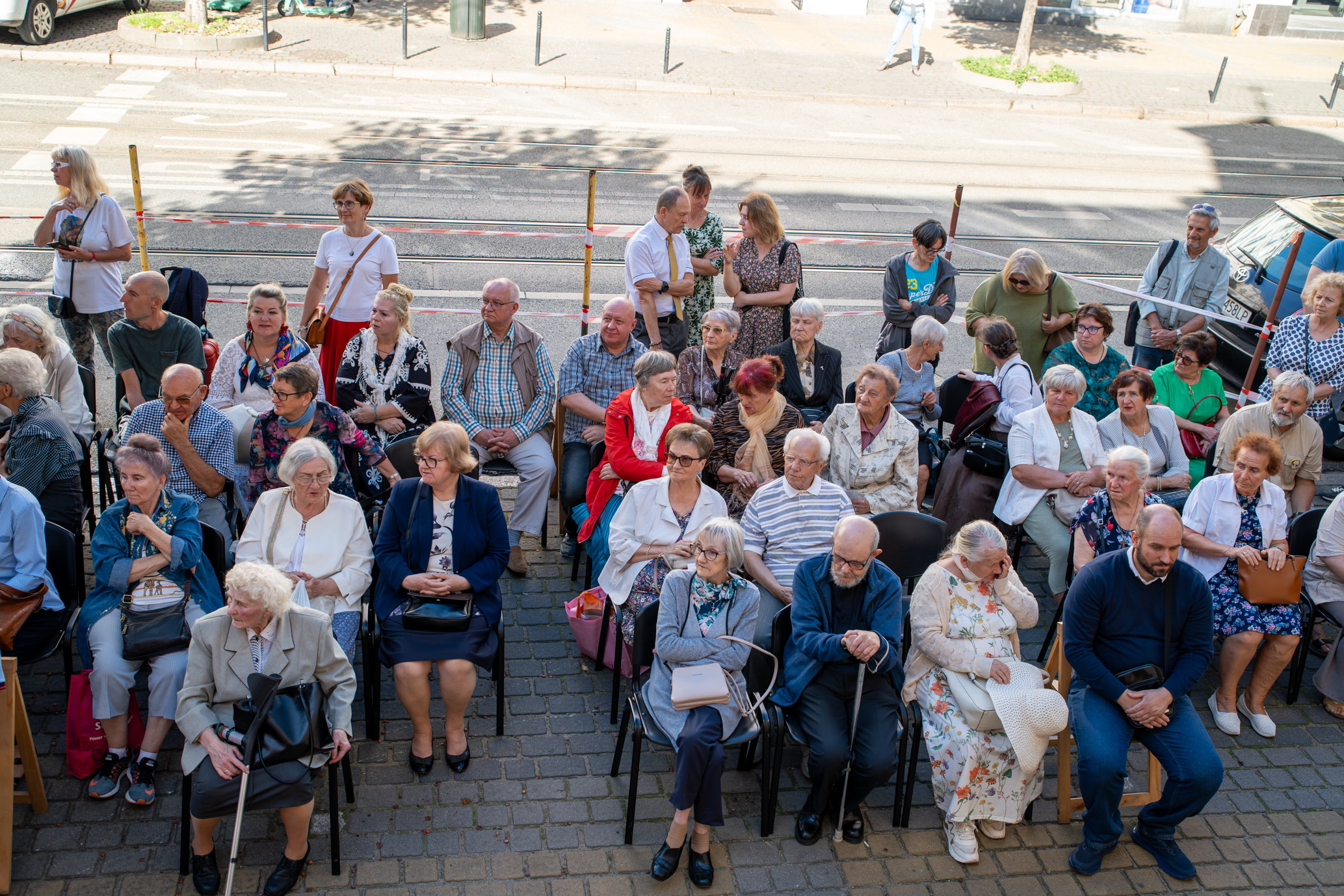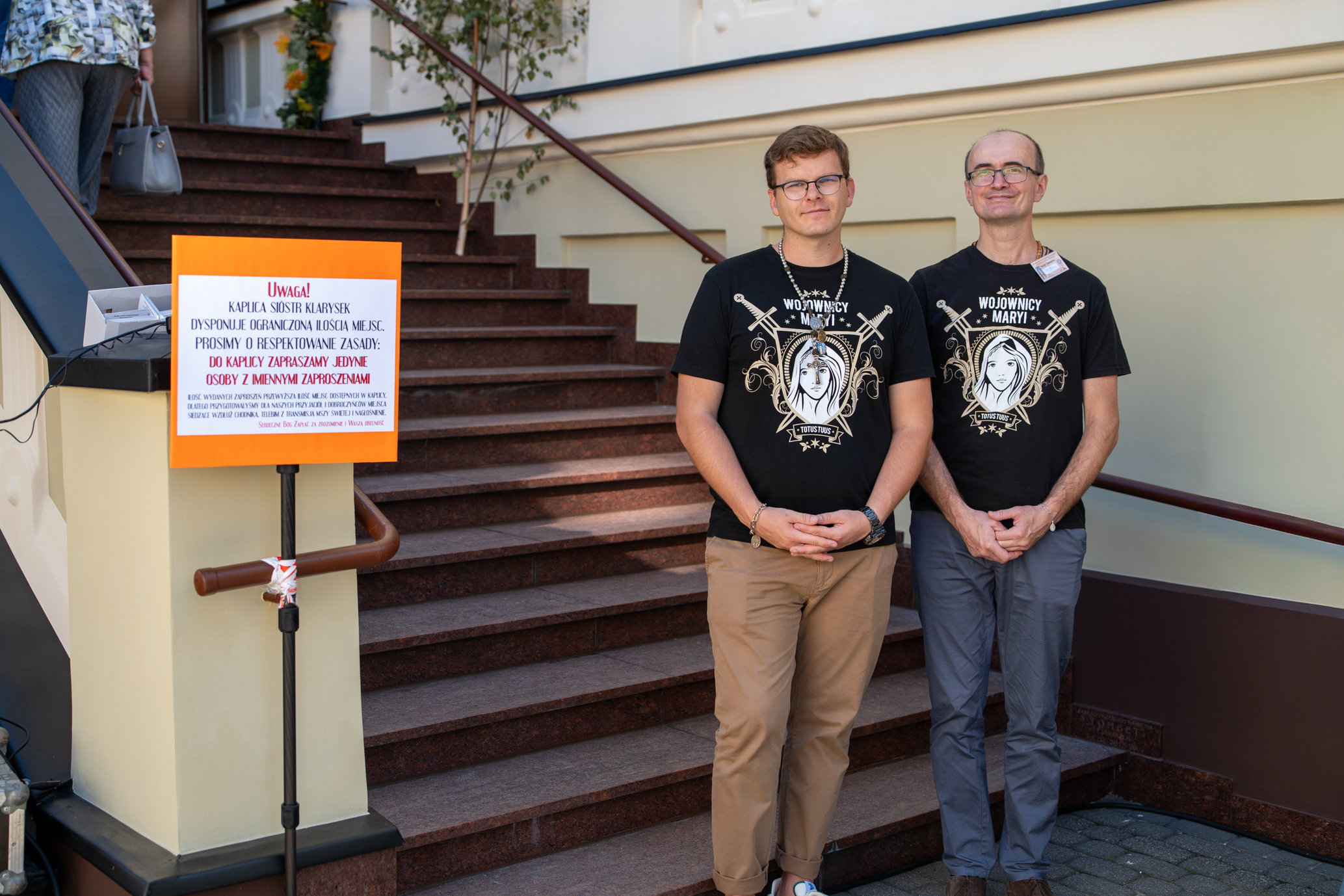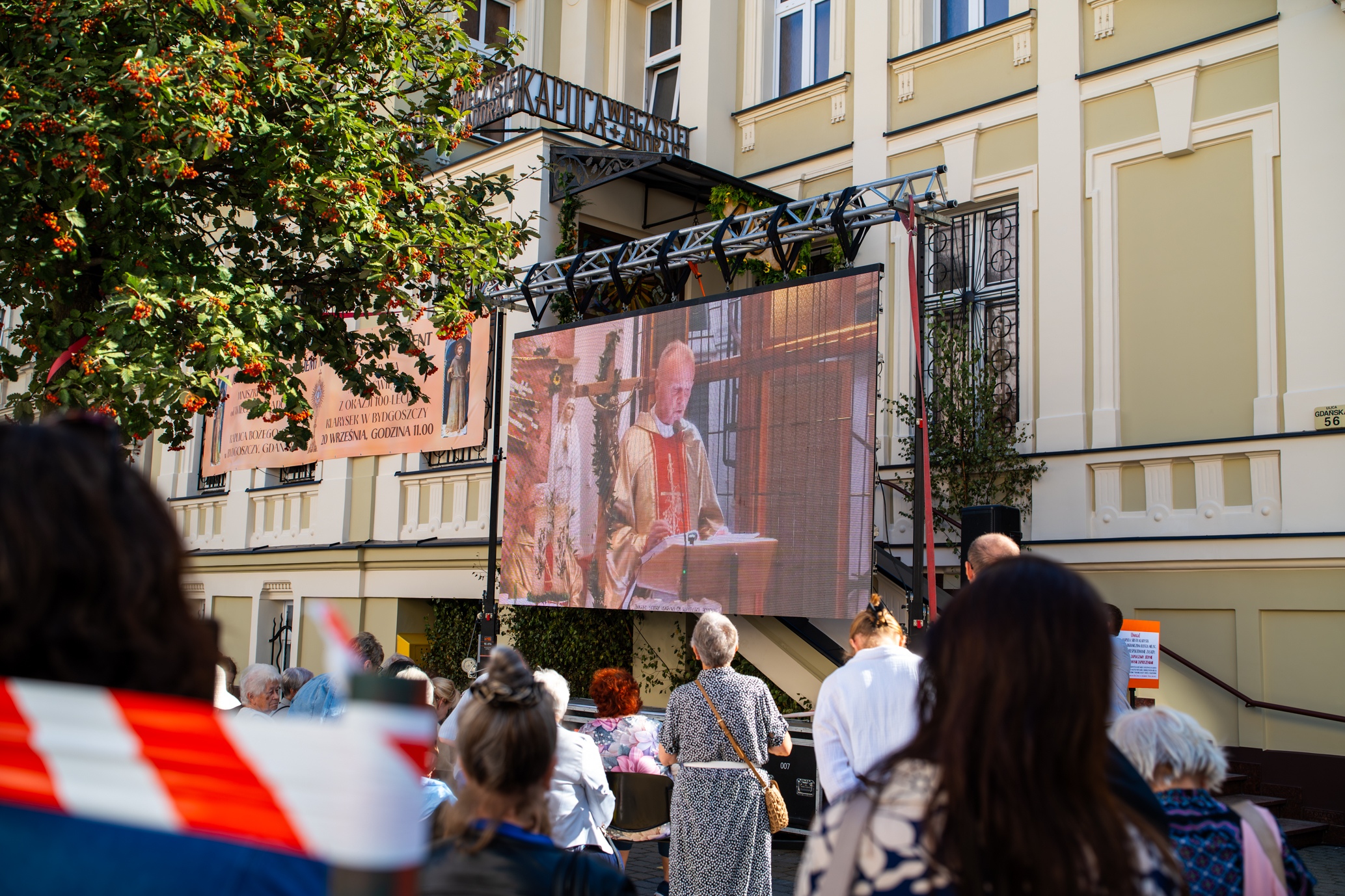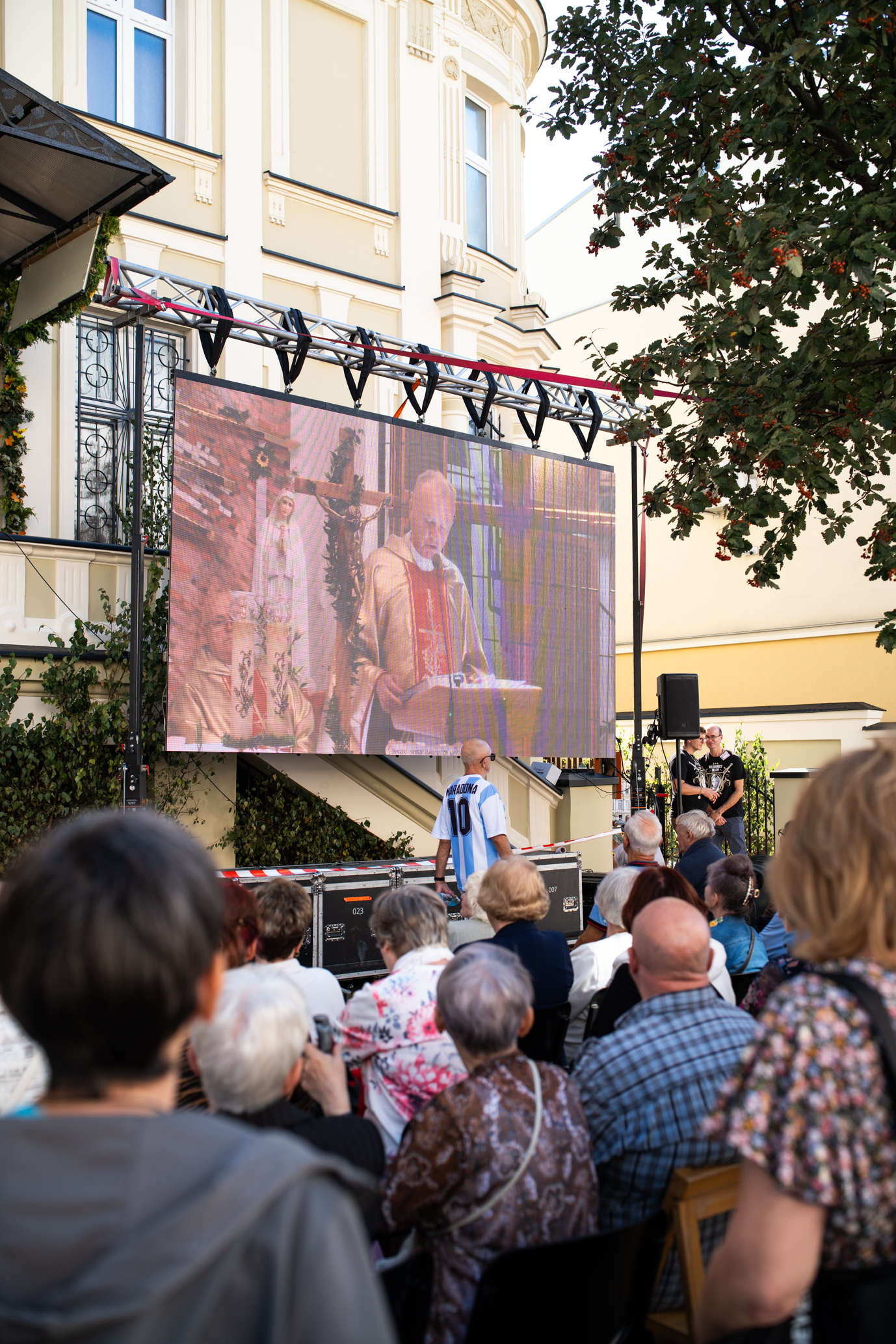 Z powodu zainstalowanego telebimu przed kaplicą, widok z ulicy był tego dnia doprawdy imponujący (jak widać na zdjęciach). Jeszcze w trakcie liturgii nasza siostra wyruszała na poszukiwanie dodatkowych krzeseł. Słowem – tego dnia towarzyszyła nam modlitewnie i osobiście naprawdę duża liczba osób.
