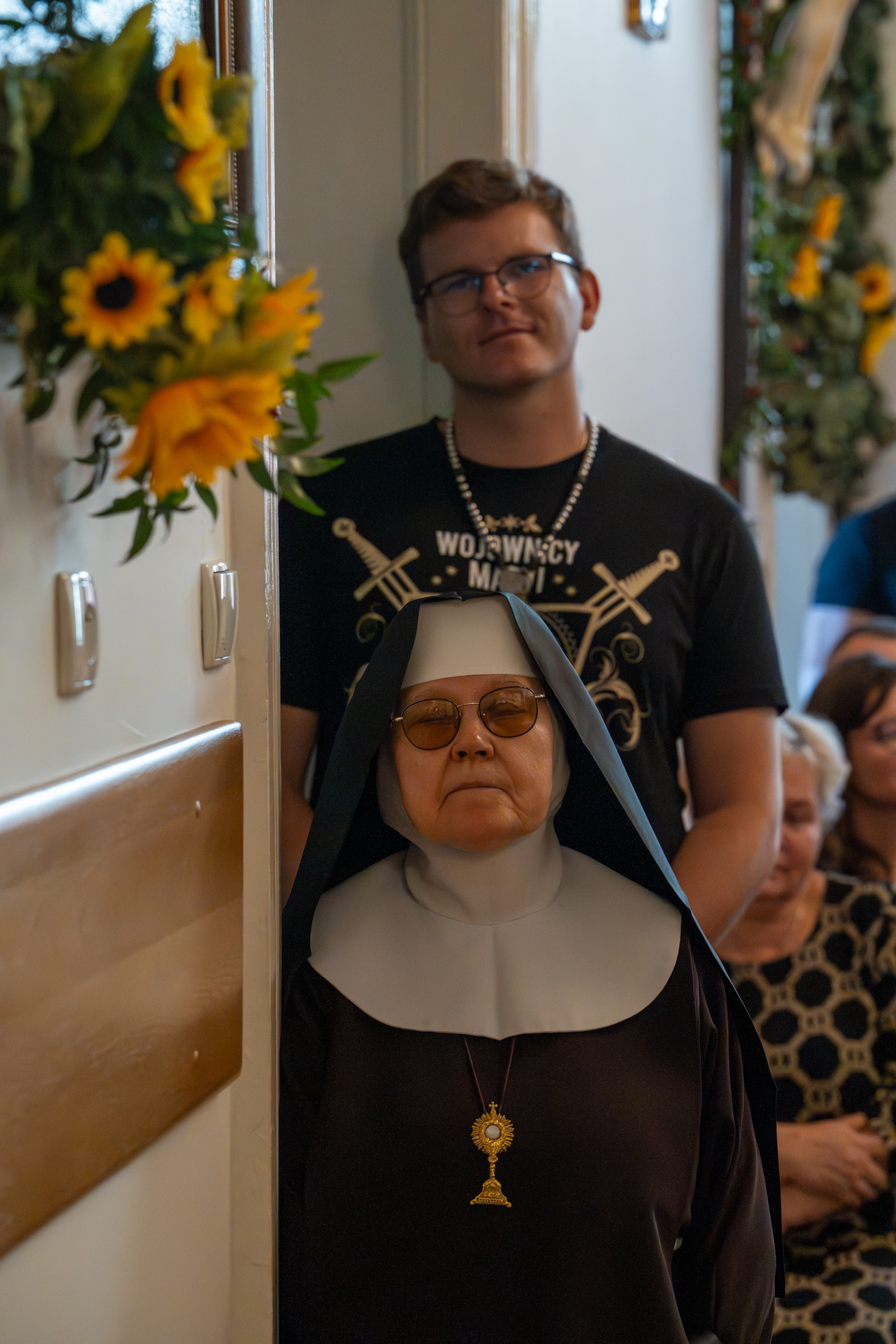 Przygotowania do tej uroczystości trwały długo i została do nich wprzęgnięta prawdziwa armia ludzi o dobrych sercach, którzy byli gotowi poświęcić swój czas i siły, aby nam pomóc. Nie sposób wyliczyć wszystkich działań: od wicia ozdobnych girland i ich montażu w kaplicy, przez przywóz krzeseł i ich rozstawianie na chodniku przed kaplicą, „kierowanie ruchem” przed drzwiami kaplicy, aż do instalacji telebimu (jako że przewidziana była naprawdę duża liczba gości – przyjaciół Jezusa-Hostii i naszej wspólnoty). Pracy było mnóstwo, więc tym bardziej doświadczyłyśmy ogromu życzliwości wielu ludzi.