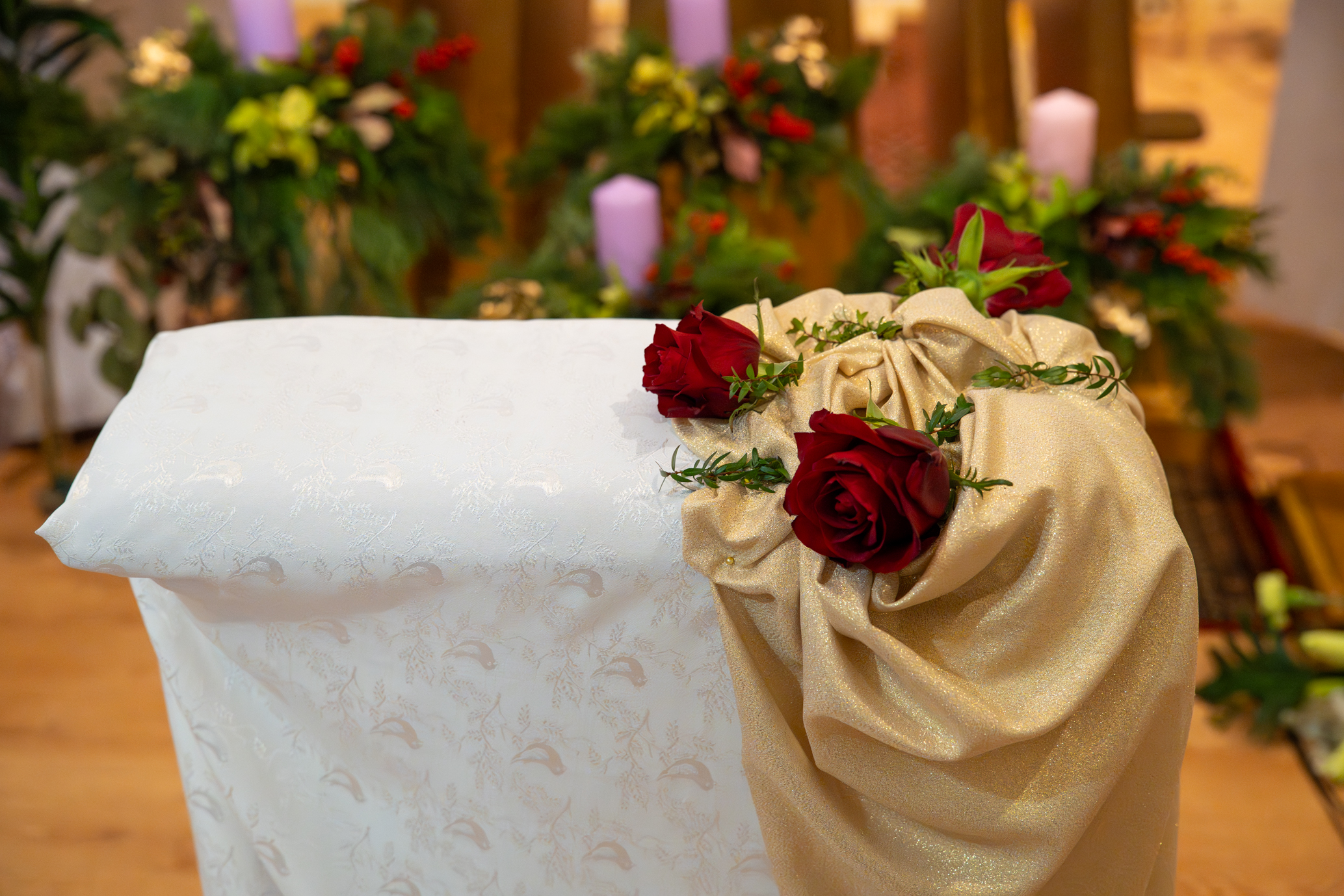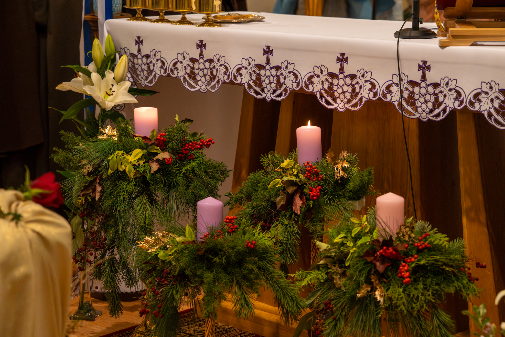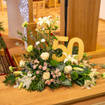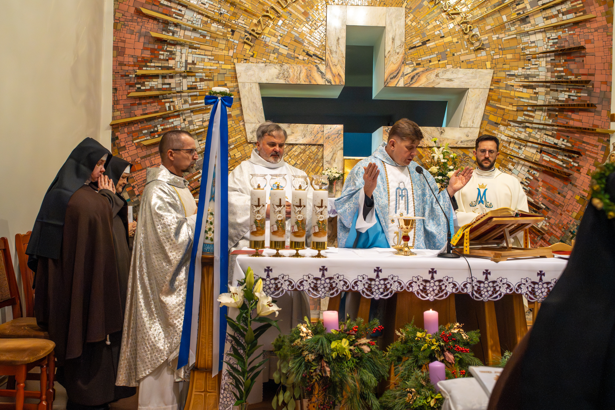 Idziemy od jednego Jubileuszu do drugiego. 3 miesiące temu obchodziłyśmy 100-lecie; tym razem pod wielką „setką” zawieszoną w kaplicy pojawiły się bukiety kwiatów z ozdobną „pięćdziesiątką” – jako że 8 grudnia 2025 r. nasza s. M. Beata od Narodzenia Pańskiego (Teresa Mendyk) obchodziła 50-lecie Profesji Świętej.