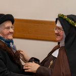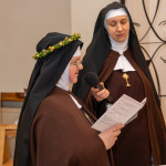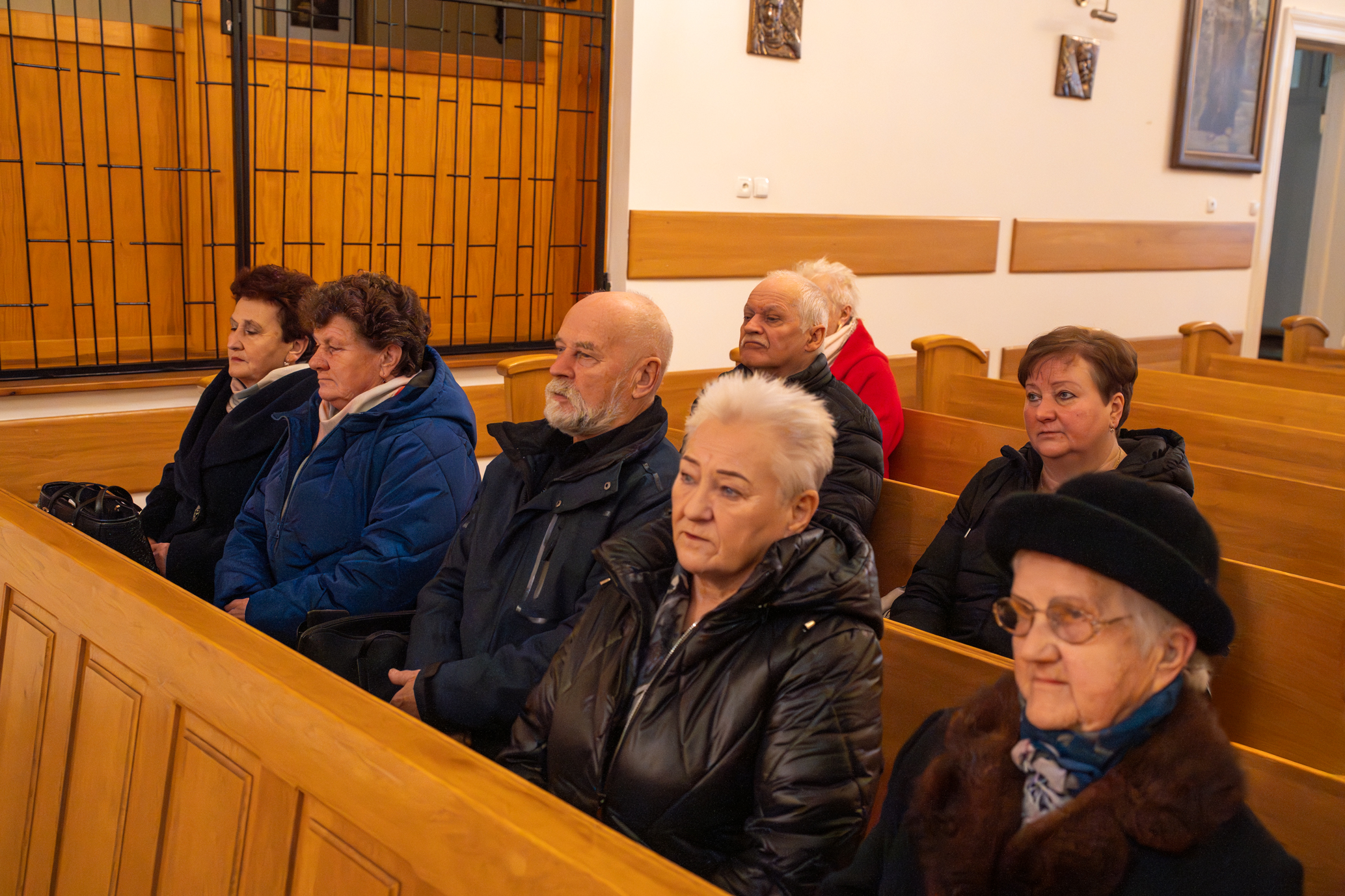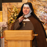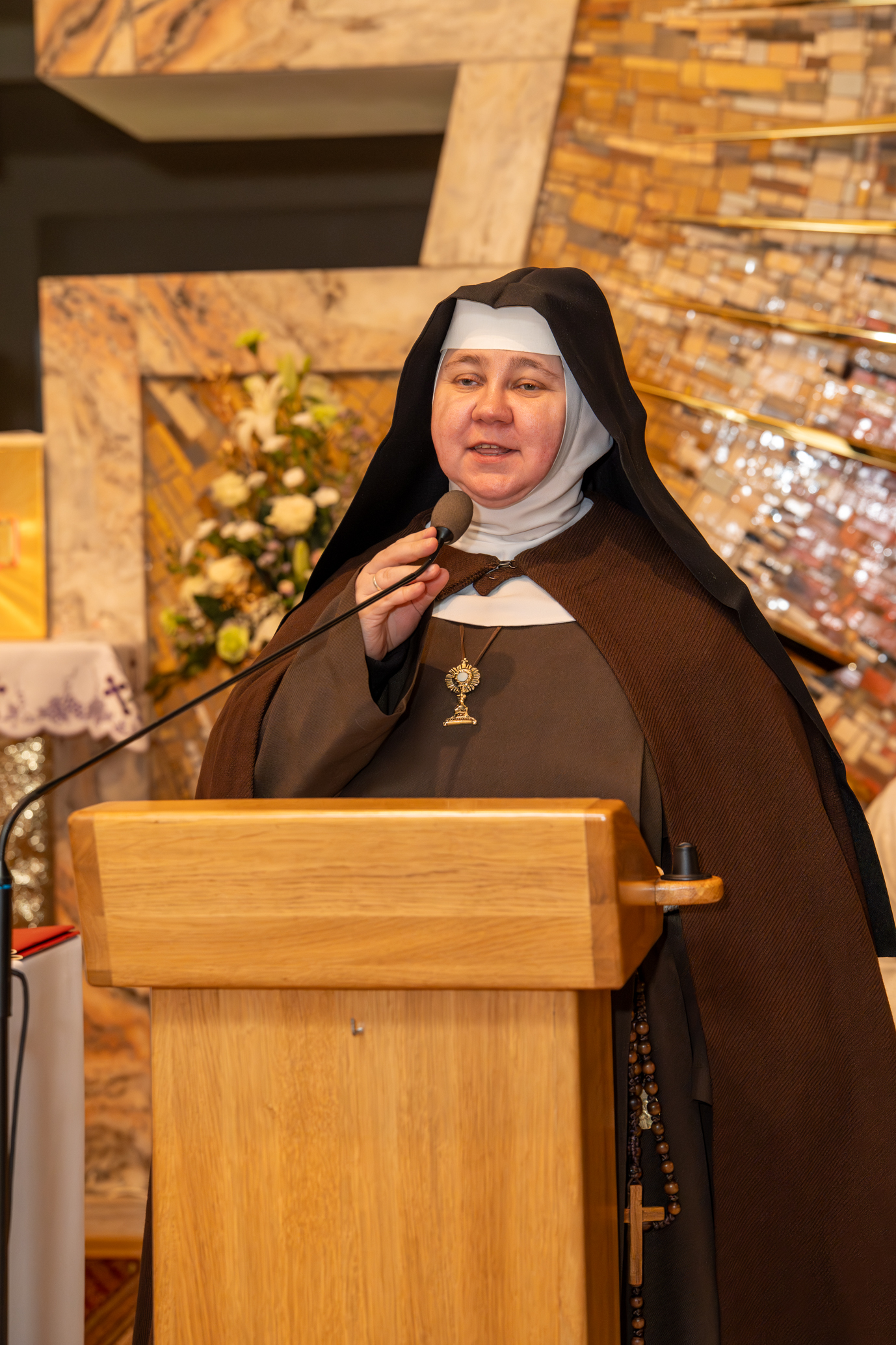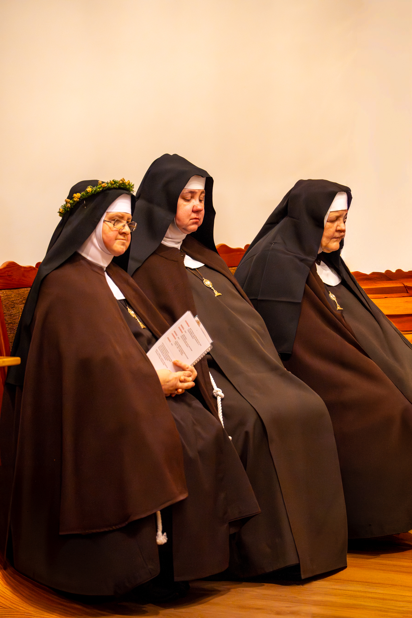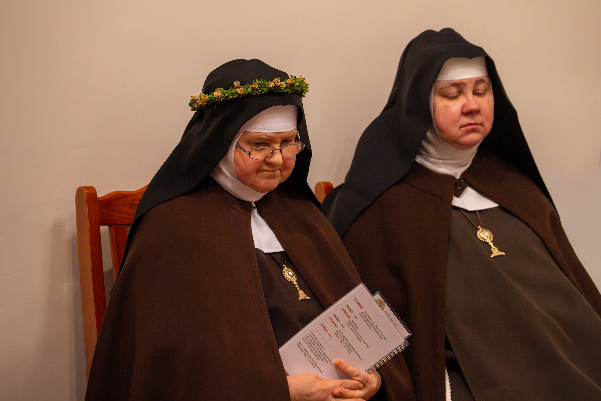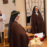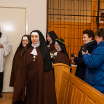 Msza Święta jubileuszowa rozpoczęła się o godz. 11:00. Brała w niej udział, oczywiście, Siostra Jubilatka wraz z naszą wspólnotą oraz najbliższą swoją rodziną, której niektórzy członkowie – mieszkający w różnych częściach Polski – przyjechali już dzień wcześniej, aby móc towarzyszyć Siostrze w tym wyjątkowym dla niej dniu. Co jednak najważniejsze – i jest to ewenement w historii naszej wspólnoty – mama s. Beaty dożyła Złotego Jubileuszu swojej córki i również była obecna na uroczystości. Było to możliwe, jako że s. Beata wstąpiła do Zakonu, mając 15 lat i będąc najstarszą córką w swojej rodzinie.