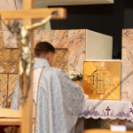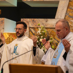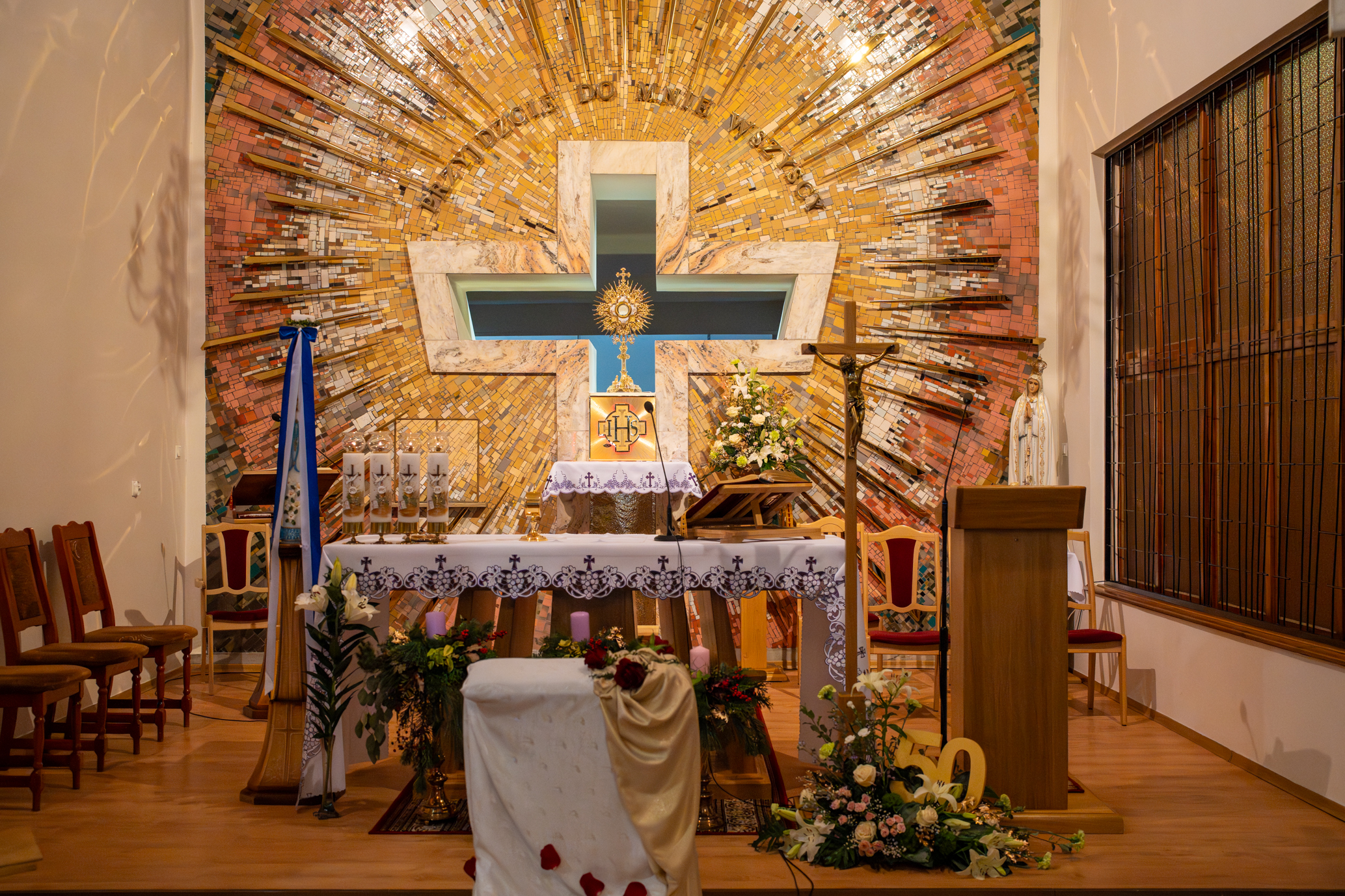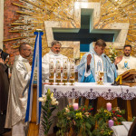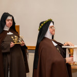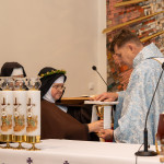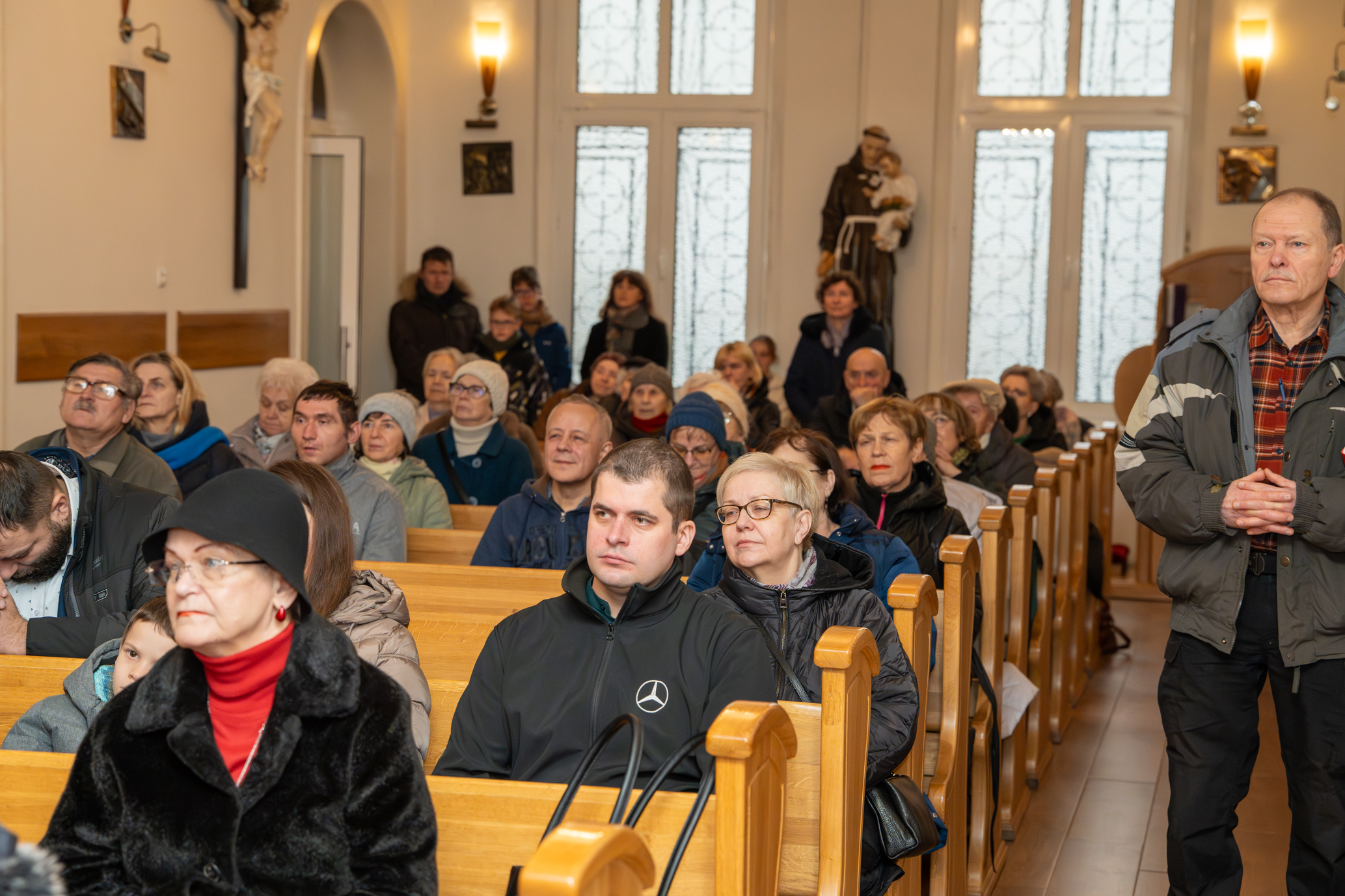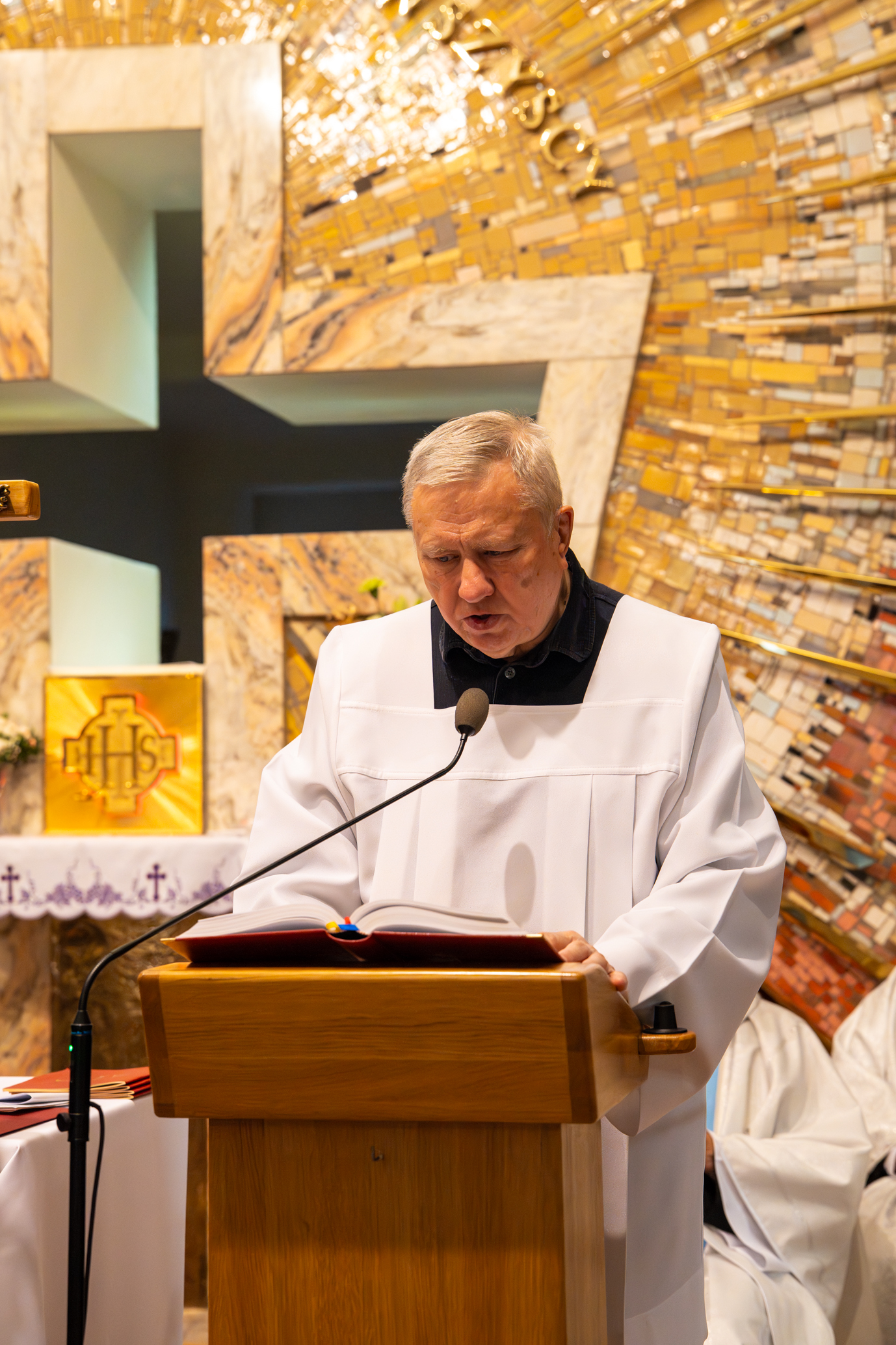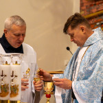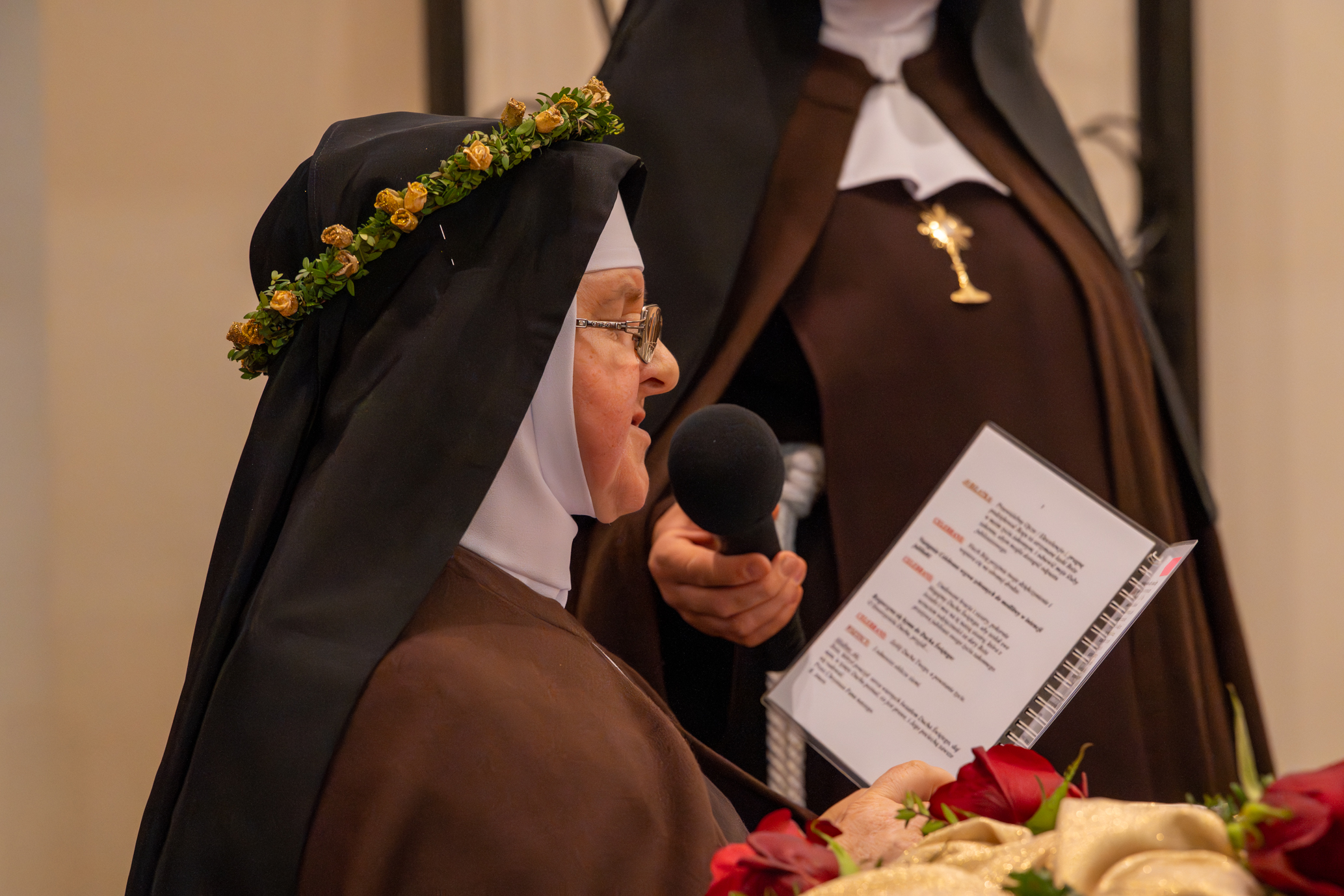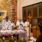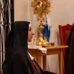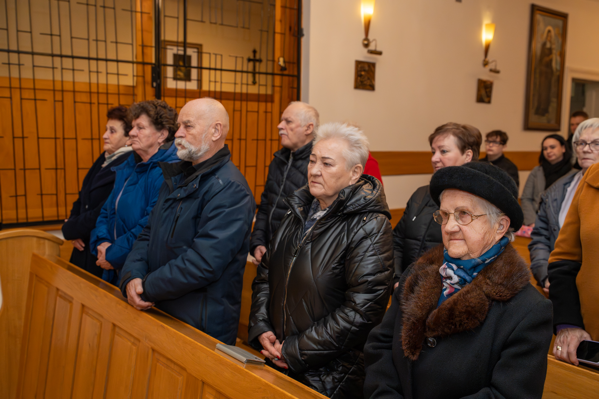 Msza Święta jubileuszowa rozpoczęła się o godz. 11:00. Brała w niej udział, oczywiście, Siostra Jubilatka wraz z naszą wspólnotą oraz najbliższą swoją rodziną, której niektórzy członkowie – mieszkający w różnych częściach Polski – przyjechali już dzień wcześniej, aby móc towarzyszyć Siostrze w tym wyjątkowym dla niej dniu. Co jednak najważniejsze – i jest to ewenement w historii naszej wspólnoty – mama s. Beaty dożyła Złotego Jubileuszu swojej córki i również była obecna na uroczystości. Było to możliwe, jako że s. Beata wstąpiła do Zakonu, mając 15 lat i będąc najstarszą córką w swojej rodzinie.
