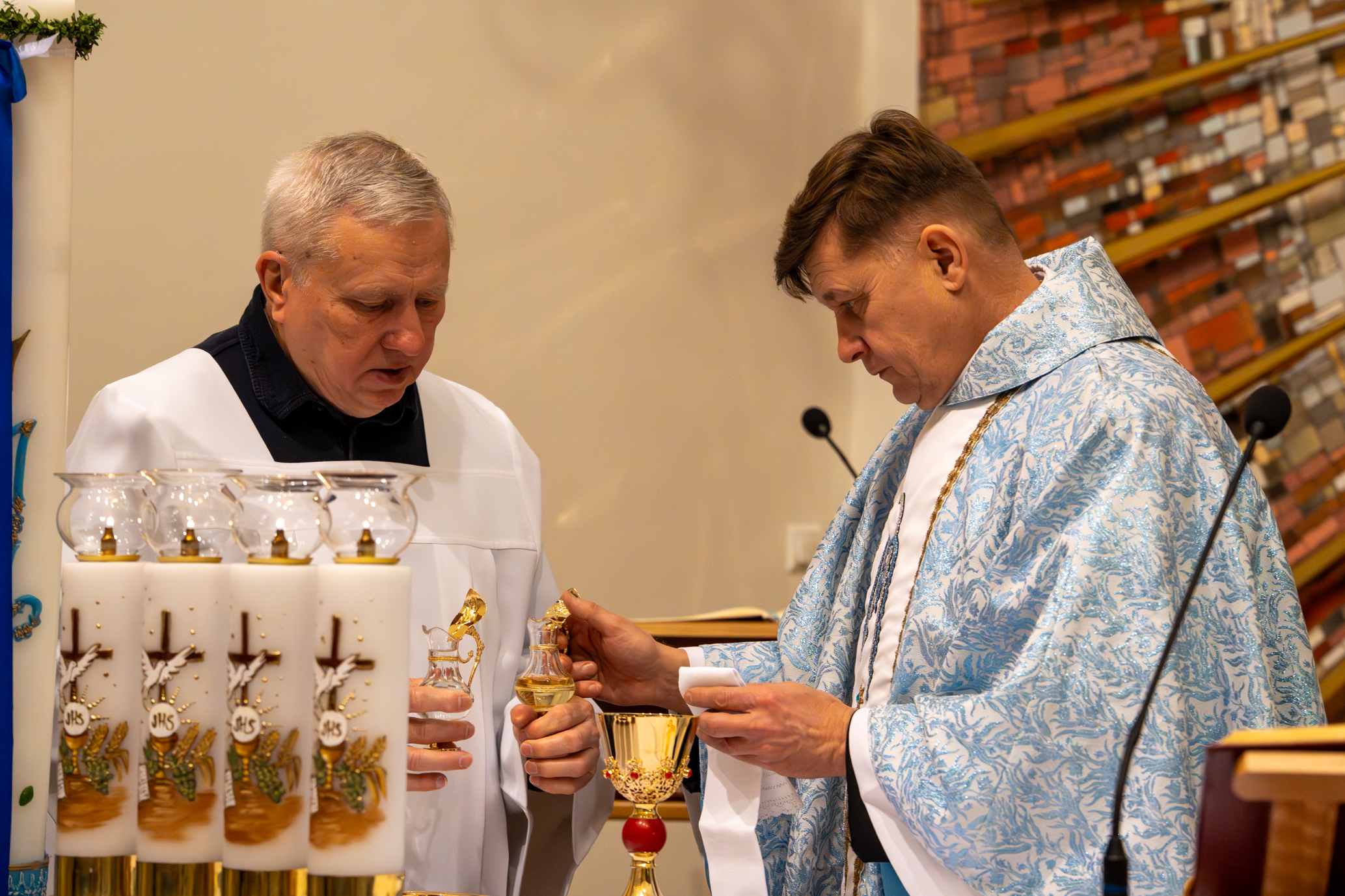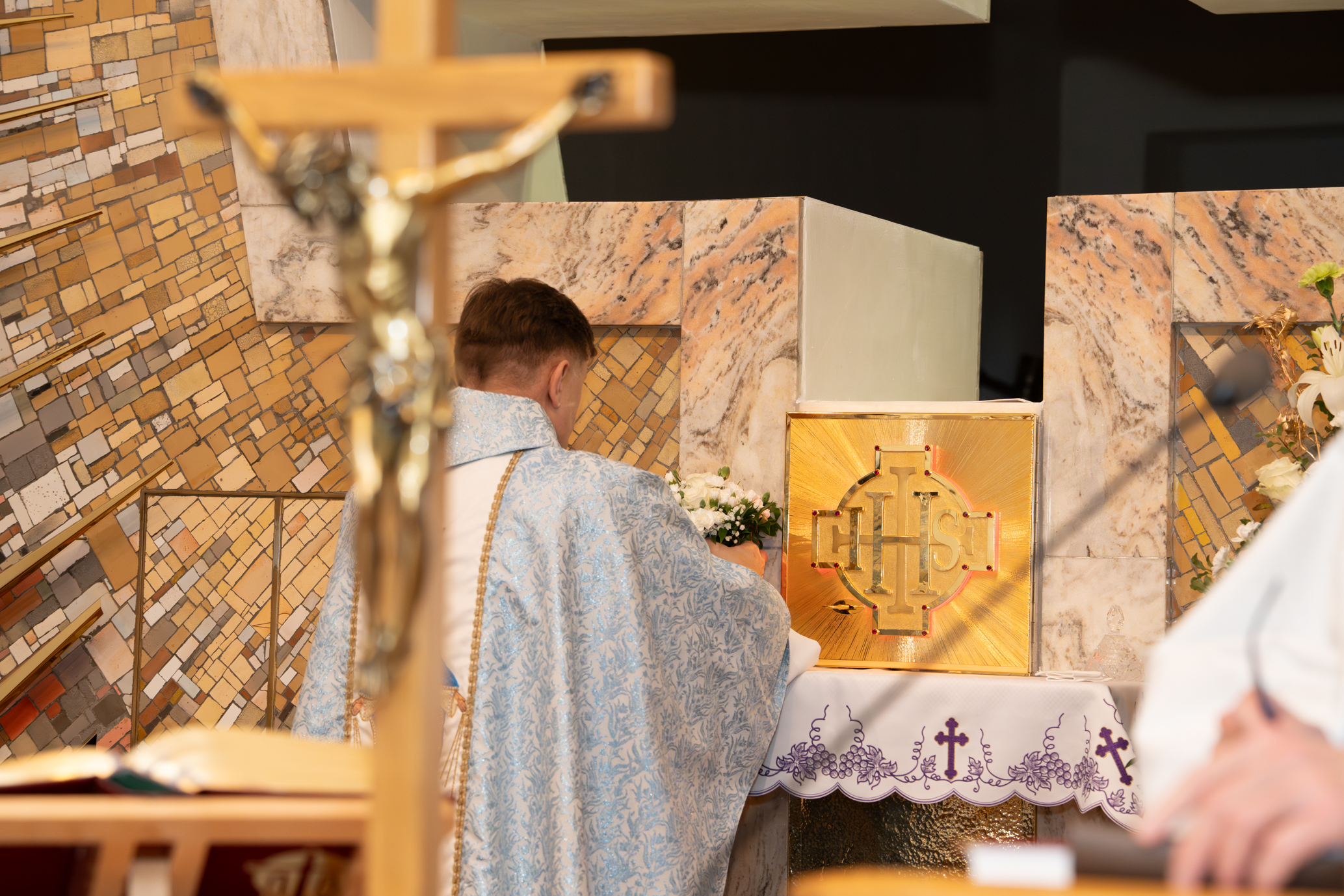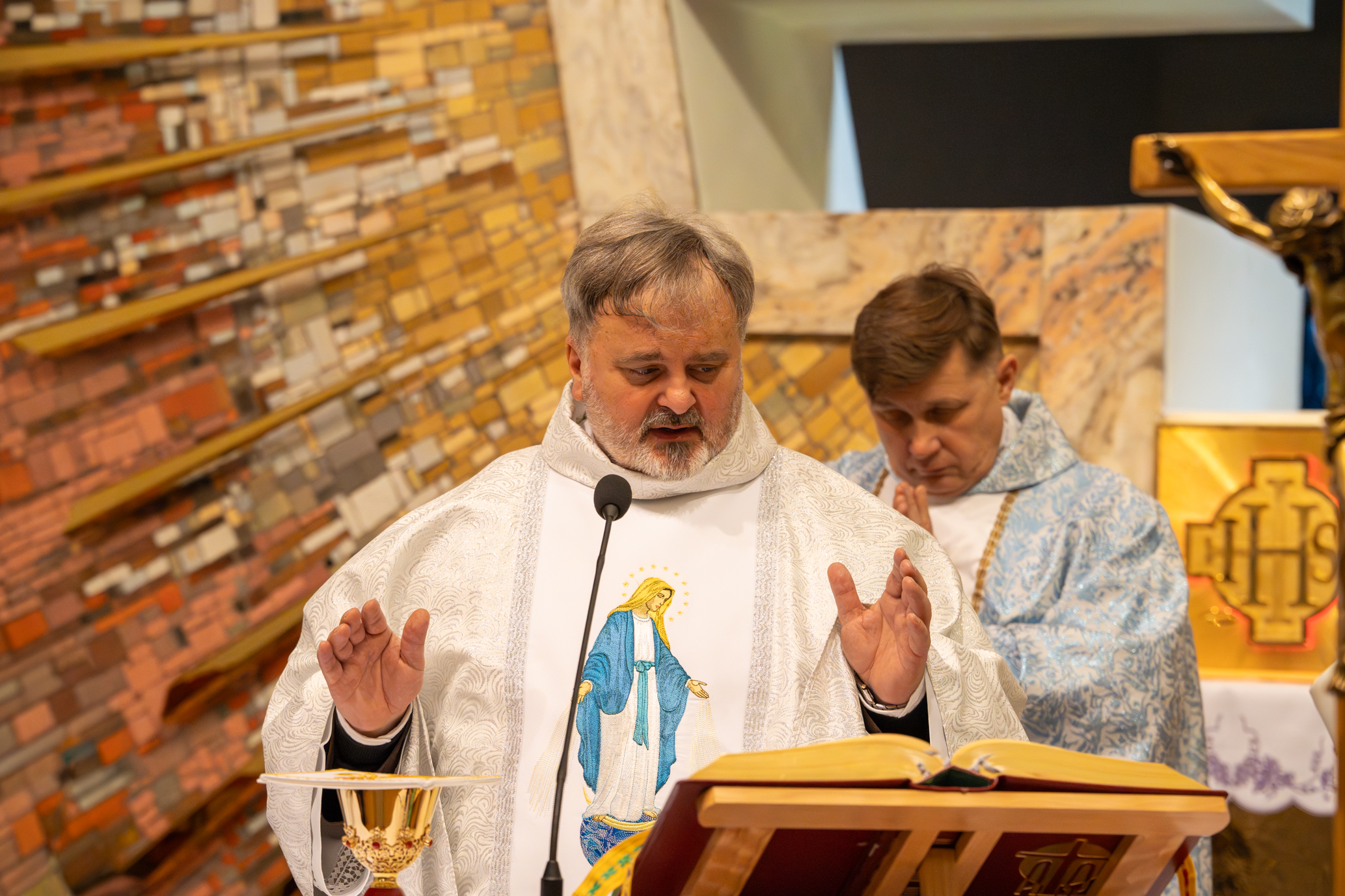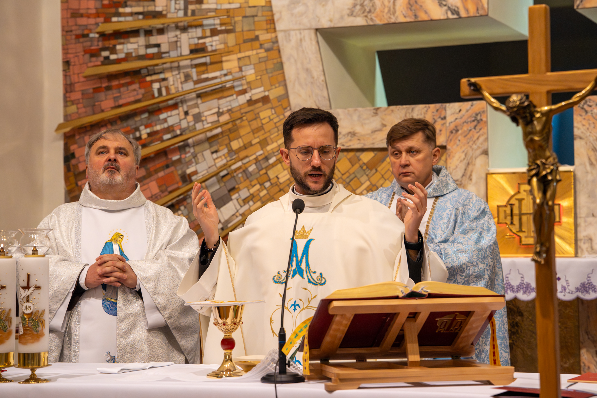 Mszy Świętej przewodniczył i homilię wygłosił ks. Piotr Kruszelnicki, proboszcz parafii pw. Narodzenia Najświętszej Maryi Panny w Osielsku – rodzinnej parafii s. M. Beaty. W koncelebrze byli: ks. Piotr Buczkowski, nasz kapelan; o. Michał Serwiński CMF, proboszcz naszej parafii pw. św. Apostołów Piotra i Pawła; o. Marek Skowroński OFM Cap. z naszej bydgoskiej wspólnoty braci kapucynów; oraz o. Krzysztof Ferenc CSSp – również z bydgoskiej wspólnoty, ale ojców duchaczy, mieszkających przy Alejach Jana Pawła II.