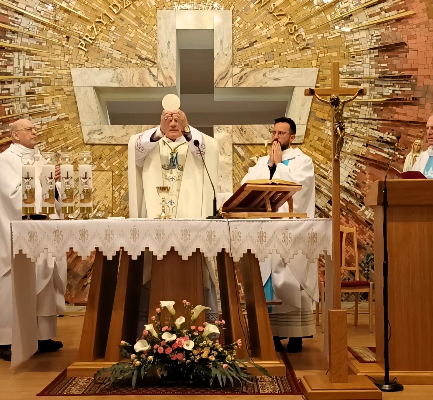 Grono osób konsekrowanych w naszej kaplicy było w tym roku powiększone o osobę proboszcza naszej parafii, o. Michała Serwińskiego CMF – dzięki czemu w tym tak ważnym dla nas dniu koncelebra przy ołtarzy (łącznie z księdzem kapelanem i ks. Czesławem) była naprawdę liczna.
