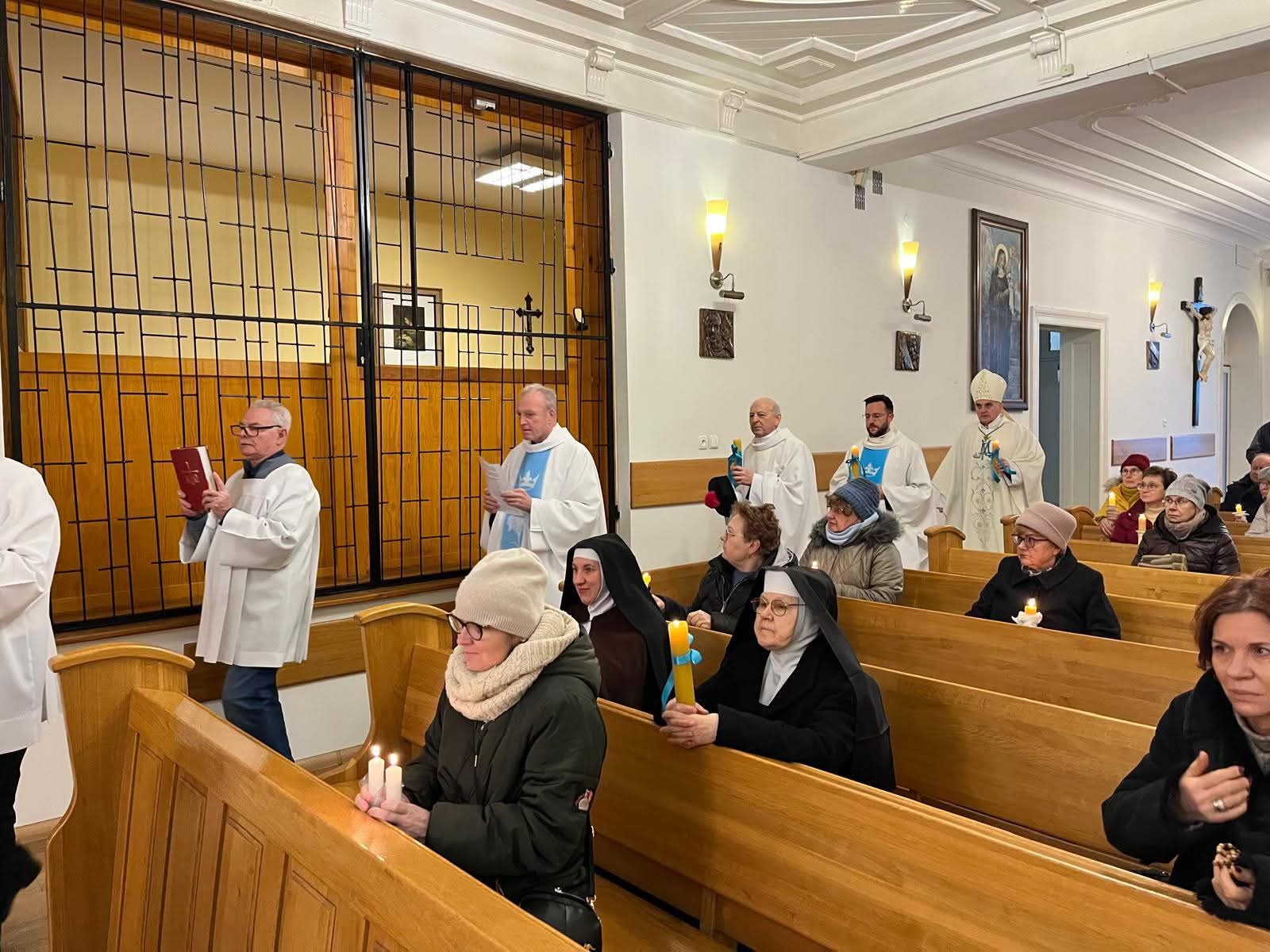2 lutego, w święto Ofiarowania Pańskiego oraz Światowy Dzień Życia Konsekrowanego, po raz drugi już towarzyszył nam ordynariusz naszej diecezji, bp Krzysztof Włodarczyk. W ten ważny dla nas dzień przypomnienia sobie o darze naszej konsekracji Bogu, tym większą radością było dla nas odnowić nasze Śluby na ręce biskupa (wprawdzie wspólnotowo, ale – jak w poprzednich latach – mogąc wypowiedzieć głośno do mikrofonu swoje imię).