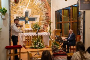 Kontynuacją nocnego czuwania modlitewnego była adoracja muzyczna, którą przeprowadził dla nas nasz wieloletni lektor, p. Karol Marcinkowski (pianino) wraz ze swym synem, Michałem (skrzypce). Do pobożnej